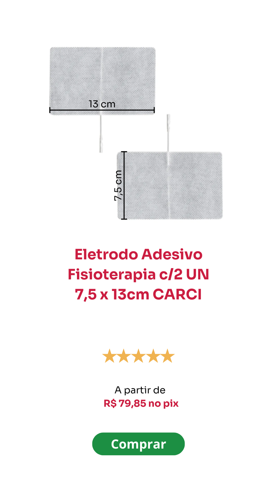 O Eletrodo de Fisioterapia CARCI é um dispositivo desenvolvido para tratamentos de eletroterapia, como TENS e EMS, amplamente utilizado na fisioterapia para recuperação muscular, alívio de dores e reabilitação de lesões. Com base adesiva, fixa-se facilmente à pele sem necessidade de fitas, faixas ou gel, proporcionando praticidade durante as sessões.